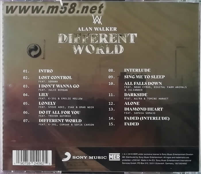 ◎收錄包括烘托新輯以「希望」為主軸同名曲〈Different World〉、百大DJ天王Steve Aoki助陣〈Lily〉等新曲外加〈Faded〉、〈Sing Me To Sleep〉、〈All Falls Down〉等全球Walkers最愛暢銷代表作