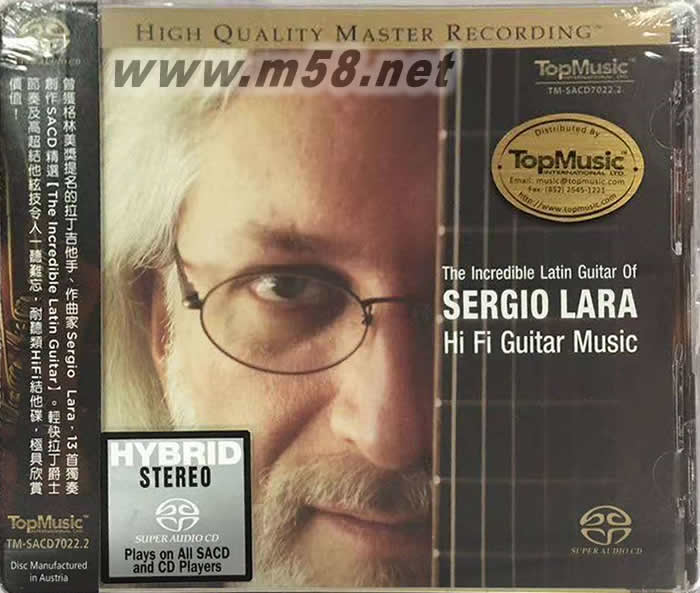 The Incredible Latin Guitar of HI FI 不可思議的拉丁吉他 SACD 限量版(m58.net) 獲得拉丁葛萊美獎提名的拉丁吉他大師,各式音樂樣樣精通,演奏風格元素豐富,包羅萬象! ★ 在本專輯中獨挑大樑彈奏自創樂曲,毫無冷場! ★ Povee Chan母帶重製,優異音質重現驚人演奏! 若您對火辣熱情的拉丁音樂著迷,絕對不能錯過塞爾吉奧羅拉精湛的拉丁吉他演奏。這位曾獲得拉丁音樂葛萊美獎提名的吉他大師,九歲開始學習古典吉他,並靠著聆聽不同類型的音樂汲取豐富的音樂養分,讓他的演奏摻揉佛朗明哥、藍調、搖滾、爵士等包羅萬象的風格節奏,演奏魅力橫掃美洲大陸各大音樂會與表演場所。 曾參與多張專輯演出,並與帕可迪魯奇亞、約翰麥克勞福林等吉他大師共同合作的塞爾吉奧羅拉。此次,他獨挑大樑,在這張最新專輯獨自演奏 13 首自行創作的樂曲。除了技藝超群的演奏,本專輯更由發燒廠牌 Top Music 的當家工程師 Povee Chan 母帶重製推出 Hybrid SACD,透過 DSD 的高取樣率格式,清晰傳達這位吉他大師演奏時的瞬間暫態細節,以及渲染力十足的動態變化。本片全球限量 1000 張,錯過此次以后便沒有機會了!