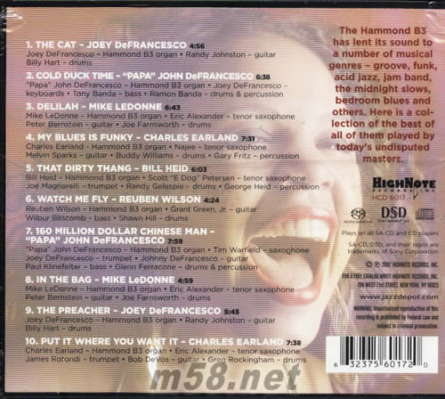 FUNKY ORGAN B3 JAZZ GROOVE SACD專輯背面圖片