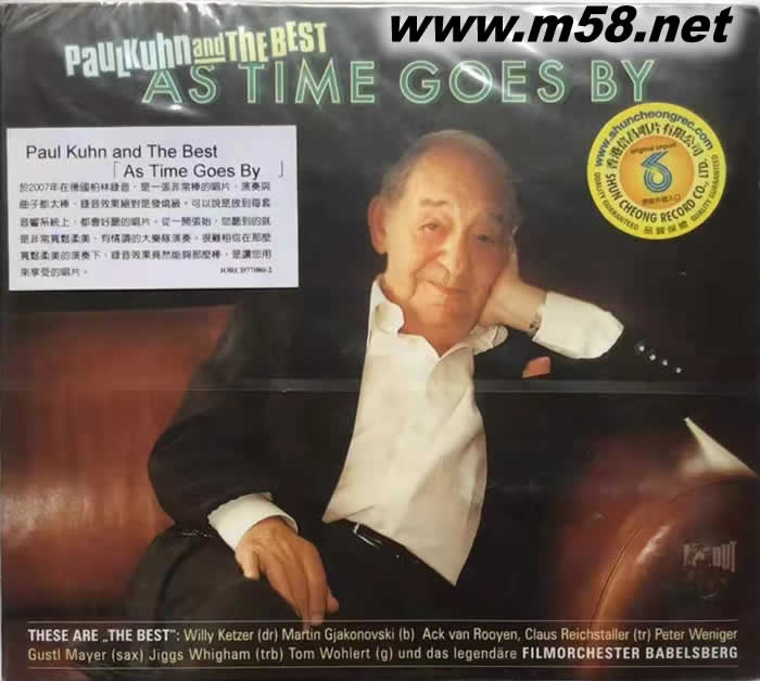 隨時間流逝 爵士樂隊 AS TIME GOES BY(m58.net) 1928年出生于威斯巴登(Wiesbaden)的德國爵士樂偉人保羅•庫恩(Paul Kuhn)集作曲、鋼琴演奏、演唱及樂隊領隊等多元身份于一身,多才多藝。庫恩橫溢的天賦音樂才華自他在8歲時首次作登臺演奏手風琴開始被人發掘,但隨后對爵士樂產生濃厚興趣,特別是他的鋼琴演奏特別出色而其演唱風格和唱腔跟爵士樂大師格倫•米勒(Glenn Miller)有點相似,在當時的德國直是出類拔萃,極受歡迎。在第二次世界大戰時他更被徴召向駐巴黎的德國防衛軍作勞軍演出,但他亦受聘于駐歐洲的美軍電臺作實況演唱廣播,可想而知他在爵士樂領域得到多方面的認同和肯定。庫恩于2013年9月離世,在過往的數十年他不斷參予創作和演出,亦曾是柏林辛達.弗雷斯大樂隊(Sender Freies Berlin Big Band)和德國西南廣播大樂隊(Big Band of SWR)等著名爵士樂隊的領隊,而他演唱的 【Es gibt kein Bier auf Hawaii(在夏威夷欠缺了啤酒)、【Almost The Blues(近乎藍調) 】、【Das Alte Spinnrad舊紡車) 】和【Gateway to Crime(犯罪門檻)】等皆成為經典金曲,廣泛流傳。為紀念這位爵士樂殿堂級大師,德國著名的爵士樂製作公司「IN+OUT Records」精心挑了21首庫恩最為膾炙人口的歌曲以180克處女膠精製的黑膠盤向這位一代宗師致敬,這些歌曲包括他的首本名曲【Almost The Blues(近乎藍調)】、【As Time Goes By(隨時間流逝)】、【That Old Feeling(舊日情懷)】、【’Round Midnight(午夜時份)】、【I’m Getting Sentimental Over You(我對你產生情愫)】和【The Best Is Yet To Come(好事會隨來)】等不同年代的長青經典正好印證這爵士樂偉人一生精彩輝煌的經歷,每首歌曲無論是編曲、演奏和演唱皆是爵士樂的典范,加上採用全新技術調較母盤,模擬聲效更為突出,在懷念大師級的演繹時更為你提供更高的聽覺享受。