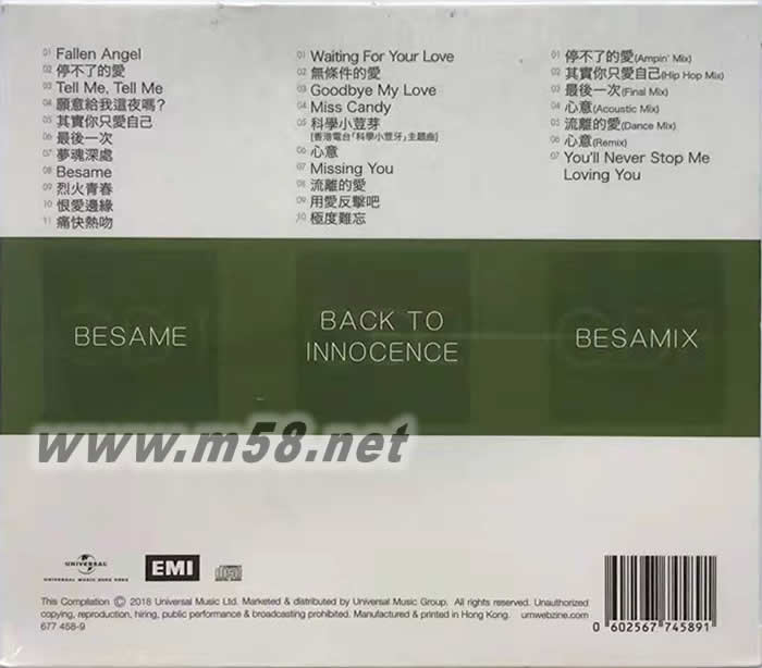 環球經典禮贊 (3in1) 黎明詩專輯背面圖片