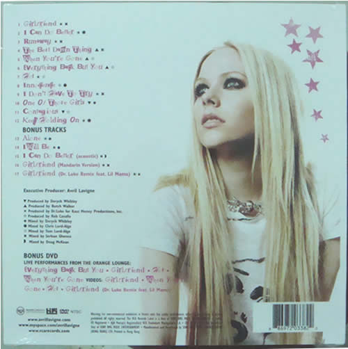 01 Girlfriend 02 I Can Do Better 03 Runaway 04 The Best Damn Thing 05 When Youre Gone 06 Everything Back But You 07 Hot 08 Innocence 09 I Dont Have to Try 10 One of Those Girls 11 Contagious 12 Keep Holding on BONUS TRACKS 13 Alone 14 I will Be 15 I Con Do Bettet(acroustic) 16 Girl friend (Mandarin Version) 17 Girl friend (Dr.Luke Remix feat.LII Mama