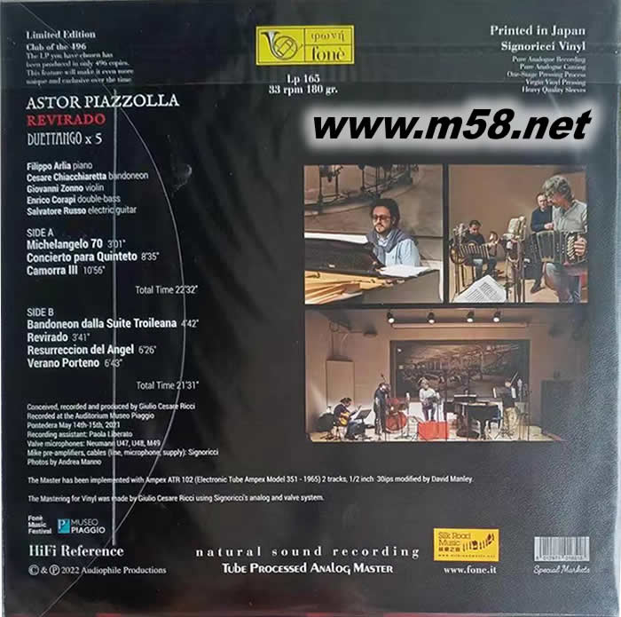 皮亞佐拉 我會(huì)重來 超級(jí)發(fā)燒 Astor PiazzollaRevirado 珍貴透明膠 (鋼琴、手風(fēng)琴、大提琴、小提琴、吉它)黑膠 限量496張專輯背面圖片