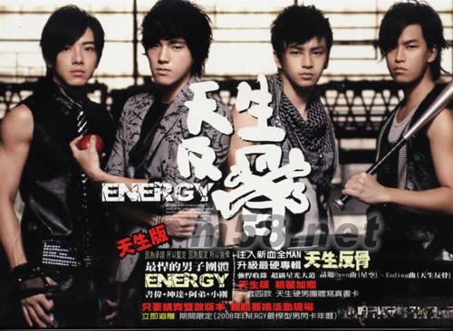 天生反骨(天生版)(m58.net) 臺灣男子演唱團體Energy出道五年,由2003年成員ToRo離隊,至2005年團長牛奶為了專注于舞蹈而退團,自去年三位成員書偉、坤達和阿弟推出《猩人類》,2007年Energy以全新面貌再度大展勁舞本色,加入新成員小剛,并以酷勁形象大耍《天生反骨》!全新專輯《天生反骨》收錄了10首情歌,包括了「天生反骨」、「上癮」、「鋼索」、「星空」和「萬有引力」。首波同名主打歌「天生反骨」是一首結合了新世代搖滾加上嘻哈Rap的酷歌,歌詞里完全反應出年輕人反抗既定成見的熱血反骨性格。 為了表現出搖滾節奏的力量,在「天生反骨」的舞蹈中,Energy融合了霹靂舞、新杰克搖擺、戰斗舞、電流和嘻哈,也有彼此互相挑釁和帶點戰斗意味的互動,甚至還有挑戰人體工學的全體倒立45度的高難度動作。為了配合「天生反骨」的酷勁,導演采用火來襯托反骨舞的酷勁,在棚里燒起一圈火,讓Energy在里面大跳反骨舞,此外還有旋轉火球和跨越火欄的場面。