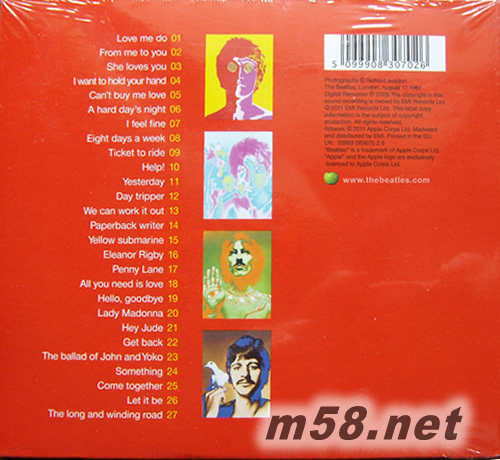 THE BEATLES 1 (精選27首紅色封面)(m58.net) 獨(dú)一無二,無可取代,世紀(jì)最愛!一張唱片,一個世紀(jì),一個傳奇,唯一單CD、一次收錄27首Beatles冠軍歌曲;建構(gòu)近代流行搖滾樂雛形的傳奇樂隊!超過79分鐘的經(jīng)典最愛,享譽(yù)全球的Abbey Road Studios錄音室工程技師團(tuán)隊,全新數(shù)位化母帶重新技術(shù)製作!Digisleeve豪華包裝、首批限定! ,