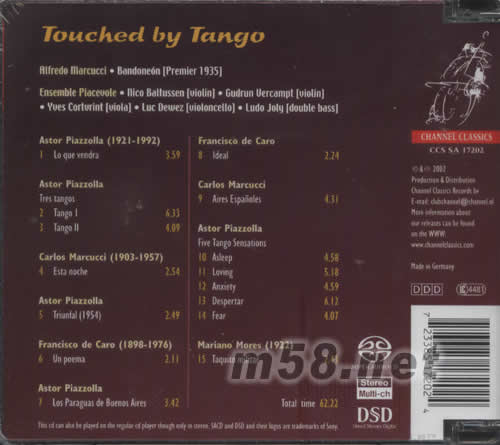 阿根廷著名手風琴演奏家兼作曲家CARLOS MARCUCCI 的侄子 ALFREDO MARCUCCI拉奏多首經典阿根延探戈音樂,包括皮阿佐拉的多首探戈管弦樂曲及CARLOS MARCUCCI的探戈作品等.ALFREDO MARCUCCI的演繹熱情澎湃,盡顯拉丁音樂情熱奔放特色.