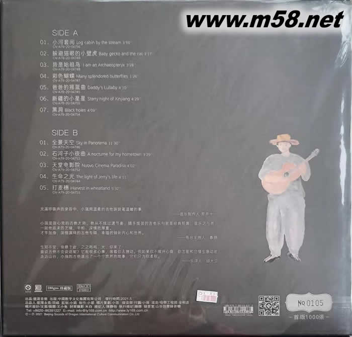 一把吉他,對每一個人的意義不同,吉他對于小強而言就是他的世界,他用吉他表達生命和生活,精彩與熱愛,他用吉他去詮釋探究世界的一切,第一張唱片承載著他獨特的個人氣質,每一把吉他都是不同的,有古典的、溫暖的、熱情的...而小強的吉他就是屬于他自己的獨特表達,沒有人可以復制。