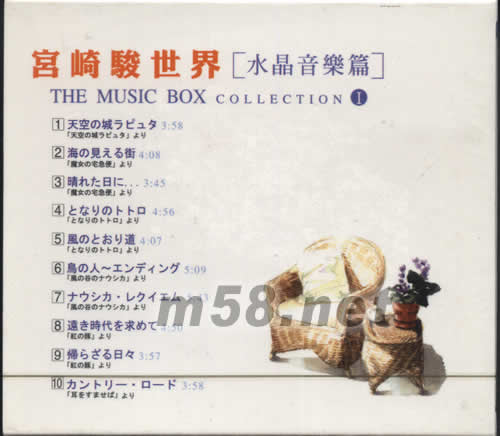 宮崎駿世界[水晶音樂篇]THE MUSIC BOX COLLECTION 1(m58.net) 每每看到日本動(dòng)畫大師·宮崎駿的作品時(shí),內(nèi)心總會(huì)洋溢著溫專馨純真的感覺。 本輯精選[魔法公主][天空之城][龍貓][魔女宅急便][紅豬]主題曲與配樂,以水晶音樂方式,呈現(xiàn)出另一種純凈的風(fēng)格。沈浸在今人懷念的水晶旋律中,彷佛是織夢(mèng)的瞬間,讓溫暖心靈的音樂輕柔地環(huán)抱住你……