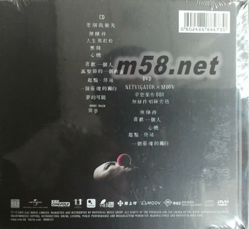 CD1.老細我撇先 2.無條件 3.人生馬拉松 4.黑洞 5.心燒 6.喜歡一個人 7.萬圣節的一個傳說 8.起點‧終站 9.一個靈魂的獨白 10.夢的可能Bonus Track 11.異夢CD1.老細我撇先 2.無條件 3.人生馬拉松 4.黑洞 5.心燒 6.喜歡一個人 7.萬圣節的一個傳說 8.起點‧終站 9.一個靈魂的獨白 10.夢的可能Bonus Track 11. 異夢Netvigator x MOOV夢想集作001無條件唱陳奕迅