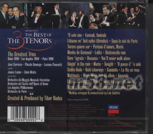 三大男高音在一起舉辦的演唱會并不多,卡雷拉斯的身體狀況不允許他參加過多的演出,1998年在我國舉辦的個人演唱會曾被稱為是他的“世紀絕唱”;帕瓦羅蒂當時那幾年來一直忙著和流行領域的朋友們舉辦音樂會;多明戈近年來有很大的動作,前一段時間大師自己則在百老匯成功指揮了威爾第的傳世之作《游吟詩人》。對樂迷們來說,當帕瓦羅蒂去世后,這張《三大男高音精選》成為真正的世紀絕唱以及最佳紀念品之一。