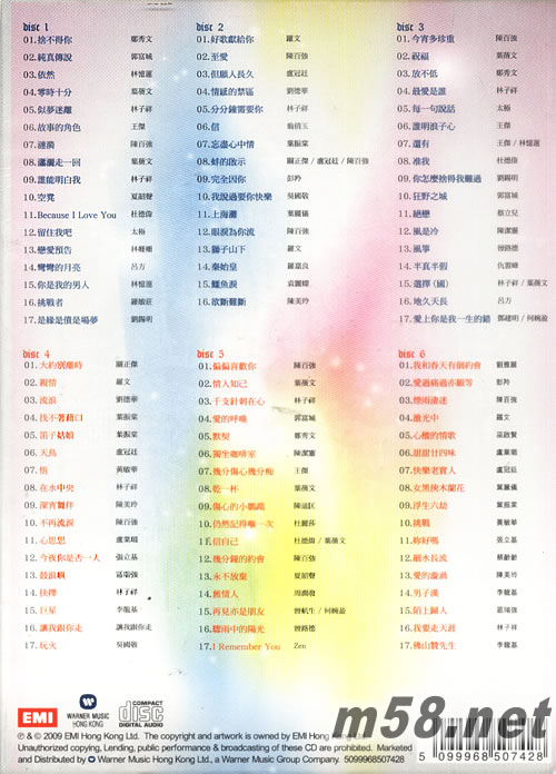 所屬歌手:   [鄭秀文] [郭富城] [林憶蓮] [葉倩文] [林子祥] [王杰] [陳百強] [夏韶聲] [杜德偉] [太極] [林姍姍] [呂方] [林憶蓮] [羅敏莊] [劉錫明] [羅文] [盧冠廷] [劉德華] [翁倩玉] [葉振棠] [關正杰] [彭羚] [吳國敬] [葉麗儀] [陳美玲] [劉雅麗] [區瑞強]