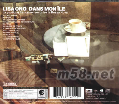 本專輯一共在東京、巴西圣保羅,以及法國巴黎三地完成制作,巧妙揉合了細膩與優雅、知性與品味這兩者氛圍,呈現出濃厚成熟的Bossa Nova樂風。請您不妨暫時忘卻平日暄擾,用悠閑的心情,加上法式的優雅,來聆聽這位活躍于國際樂壇的歌手-小野麗莎的最新專輯[左岸香頌DANS MONILE]。