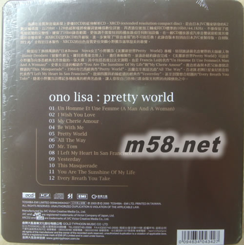 ONO LISA:PRETTY WORLD 美麗新世界 XRCD專輯背面圖片