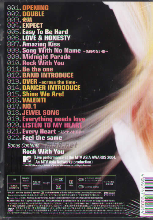 BOA LIVE TOUR 2004 LOVE HONESTY(海外版DVD)專輯背面圖片