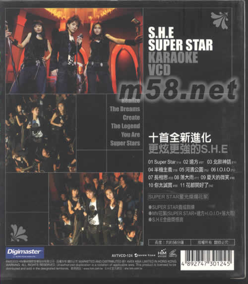 盡管 Ella因骨折受傷住院而延期S.H.E 新專輯《Super Star》的發(fā)片,但最終仍能排除萬(wàn)難,現(xiàn)在更加推《Super Star》卡拉OK VCD!據(jù)知這次專輯同名主打歌耗費(fèi)百萬(wàn)制作費(fèi),由曾為瑞典ACE OFBASE及英國(guó) BANANARAMA樂隊(duì)制作人—德國(guó) SWEETBOX 制作人 GEO— 特地為 S.H.E度身訂造,以中國(guó)式搖滾風(fēng)格呈現(xiàn),而且還是運(yùn)用中國(guó)的五聲音階;此外,陶[吉吉]及周杰倫還會(huì)為S.H.E作歌。此版本首次輯錄了S.H.E主演劇集《薔薇之戀》的主題曲「花都開好了」,不容錯(cuò)過!