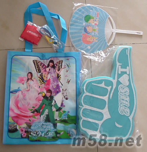 價格為估,以實到貨為準! 奇幻樂園演唱會作戰包(m58.net) 請點看產品內容物及海報等系列大圖 產品總重量:900克 “奇幻樂園”演唱會作戰包等待3年 讓S.H.E一次看見你的熱情! 最精選6項演唱會專屬行頭 讓你在演唱會上威風八面! 外包裝盒大小:長*寬*高=45*30*8CM 包括 1. 奇幻樂園專屬幻彩購物袋(雙面彩印 附背袋可側背 可將本組合一起放入袋內 輕松參加演唱會)38.8*32CM 2. 手指造型加油手套 (泡棉質材 附開口可套在手上)3. 消暑造型扇 (雙面彩印) 4. 加油口哨組(包含口哨一支+手機煉一條+專屬掛繩一條 )5. 專屬紀念護腕一個 6. 奇幻樂園演唱會-膠面精裝版海報一張。海報長*寬=72*51.5CM