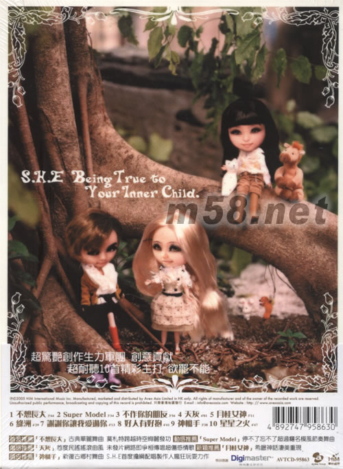 價(jià)格為估,以實(shí)到貨為準(zhǔn)! 不想長大(金色收音機(jī)造型月歷香港預(yù)購版)(m58.net) 隨專輯附贈(zèng)童話森林書卡一套 首批限量特別預(yù)購贈(zèng)品S.H.E2006精美造型金色收音機(jī)造型月歷 隨碟送海報(bào):60*43CM(見大圖) 金色收音機(jī)造型掛歷 長:42cm 寬:22cm(把手 長:20cm 寬:4cm) 內(nèi)含12張圓形歷卡,正面為S.H.E照片反面為12個(gè)月份月歷可更換式放置于金色收音機(jī)造型月歷上,并含12個(gè)月份可撕式月歷,可掛置墻上,亦可平鋪?zhàn)郎希豢梢粤⒎抛郎稀?br>唱純真的歌 S.H.E2005最新美聲巨作 首波推薦:[不想長大]古典華麗舞曲 莫扎特跨越時(shí)空絢麗發(fā)功 動(dòng)感推薦:[SUPER MODEL]停不了忘不了超過癮名模風(fēng)節(jié)奏舞曲 傷感推薦:[天灰]首度民謠搖滾曲風(fēng) 未發(fā)片網(wǎng)路即爭相傳唱超傷感情歌 新穎推薦:[月桂女神]希臘神話凄美得現(xiàn) 調(diào)皮推薦[神槍手]新復(fù)古鄉(xiāng)村舞曲 S.H.E首度擔(dān)網(wǎng)配唱制作人瘋狂玩耍力作