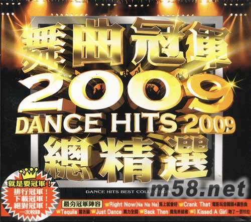 舞曲冠軍2009總精選(m58.net) 就是要冠軍! 排行冠軍! 下載冠軍! 絕對(duì)冠軍! 一次收錄 最夯陣容 right now(na na na)馬上就好 crank that 電影玩命關(guān)頭4廣告曲 Tequila龍舌蘭 Just dance舞力全開(kāi) Back then魔鬼終結(jié)者 I kissed a girl 吻了一個(gè)拉拉