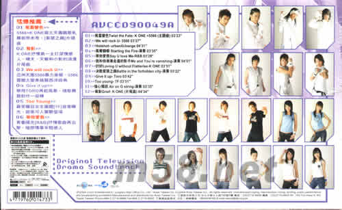 01. 風(fēng)云變色 Twist the Fate-K ONE+5566(主題曲) 02. We will rock U-5566 03. Hotshot-urbanXchange 04. 風(fēng)聲鶴唳 Starting the Fire-演奏 05. 等你愛我 Say U love Me-R&B 06. 我和你漸漸走遠(yuǎn)的影子 Me and You re vanishing-演奏 07. 討好 Loving U without Flatteries-K ONE 08. 決戰(zhàn)紫禁之巔 Battle in the forbidden city-演奏 09. Give it up-Toro 10. Too young-7F 11. 傷心獨(dú)語(yǔ) Air on G string-演奏 12. 背影 Grief-K ONE(片尾曲)
