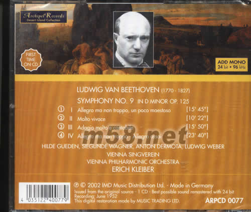 BEETHOVEN SYMPHONY NO 9第九交響樂專輯背面圖片