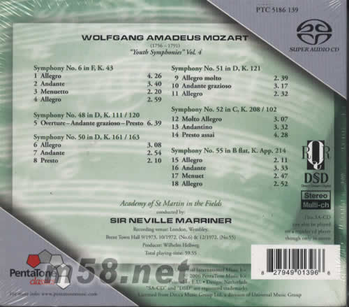 MOZART YOUTH SYMPHONIES 內維爾•馬里納爵士 莫扎特:青年時代的交響曲(m58.net)