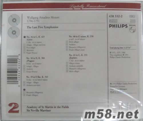 Mozart: The Last Five Symphonies(PHILIPS系列老版)專輯背面圖片