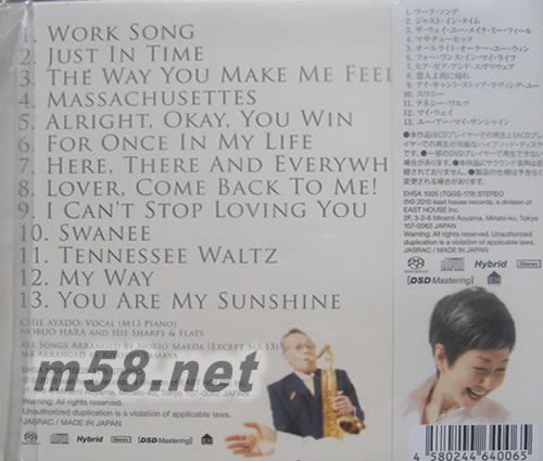 綾戶智繪用她那黑鬼唱腔般嗓音,邊談邊唱著改編自西洋流行暢銷金曲田納西華爾滋及奇異恩典,讓樂迷津津有味的享受她那R&B迷人且帶憂鬱的歌聲,再加上east house唱片公司嚴謹的製作編輯及高科技錄音器材及技術,讓本專輯不只是動聽且非常耐聽,令人愛不釋手,錄音乾凈有層次,形體清晰結實。