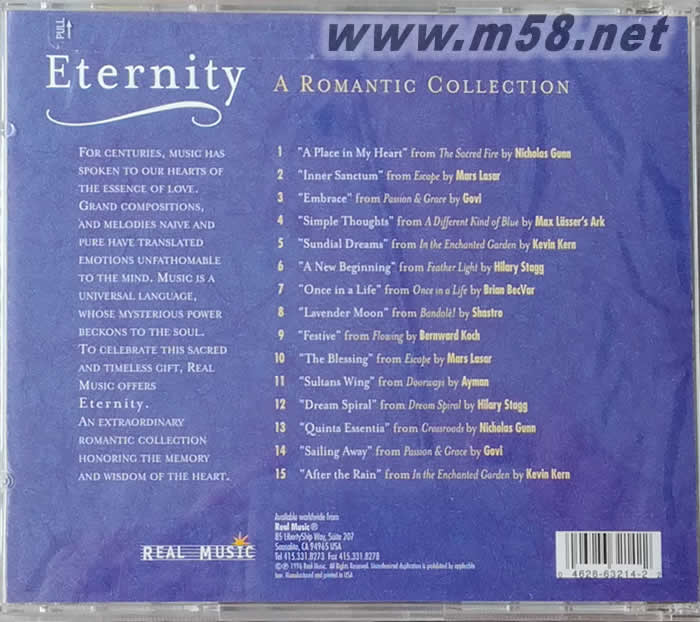 1. A Place in My Heart 2. Inner Sanctum 3. Embrace 4. Simple Thoughts 5. Sundial Dreams 6. A New Beginning 7. Once in a Life 8. Lavender Moon 9. Festive 10. The Blessing 11. Sultan's Wing 12. Dream Spiral 13. Quinta Essentia 14. Sailing Away 15. After the Rain