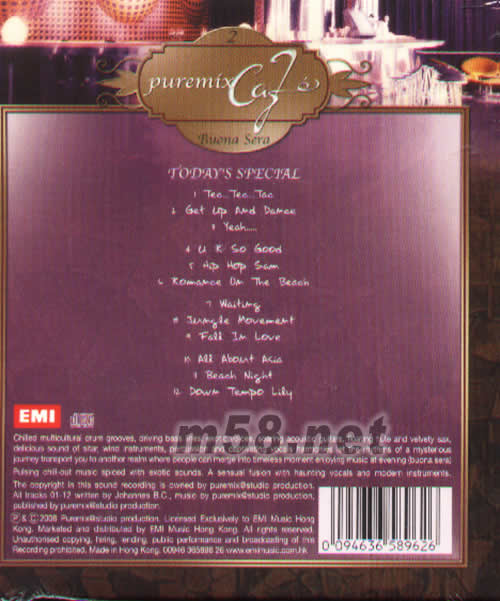 價格為估,以實到貨為準! PUREMIX VOL.TWO BUONA SERA(m58.net) 12首讓你舒緩壓力 焦慮及抑攀的CHILL OUT 音樂精選 隨碟附送大快活 [阿活即磨咖啡]券兩張