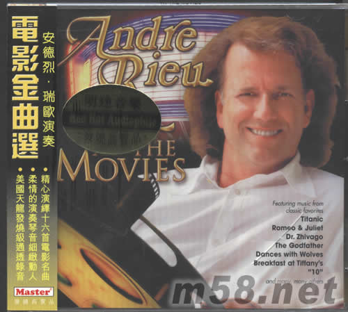 ANDRE RIEU精心演繹十六首經典電影名曲,首首精彩,包括:殉情記ROMEO AND JULIET “LOVE THEME齊瓦哥醫生DR ZHIVAGO “LARA‘S THEME/SOMEWHERE MY LOVE”鐵達尼號TITANIEC“MY HEART WILL GO ON ”,大開眼界“EYES WIDE WHUT”THE SECOND WHLTZ“,教父THE GODFATHER”MAIN TITLE“,仙樂飄飄處處聞THE XOUND OF MUSIC ”EDELWEISS“等等,數之不盡,讓聽眾一次過回憶起多個經典場面,美國DENON天龍發燒錄音,音色通透,不容錯過。