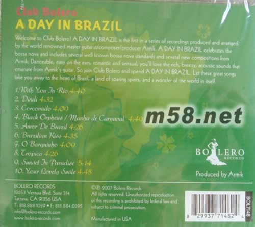 結他手ARMIK一改以往法林明高吉他風格,以結他彈奏出十首巴西BOSSA NOVA風格之熱情樂章,以熱情爽朗的樂風,重新演澤JOBIM名作,悠揚悅耳的旋律令人聞歌起舞。BOLERO發(fā)燒級錄音,結他聲清脆玲瓏,精彩至極。
