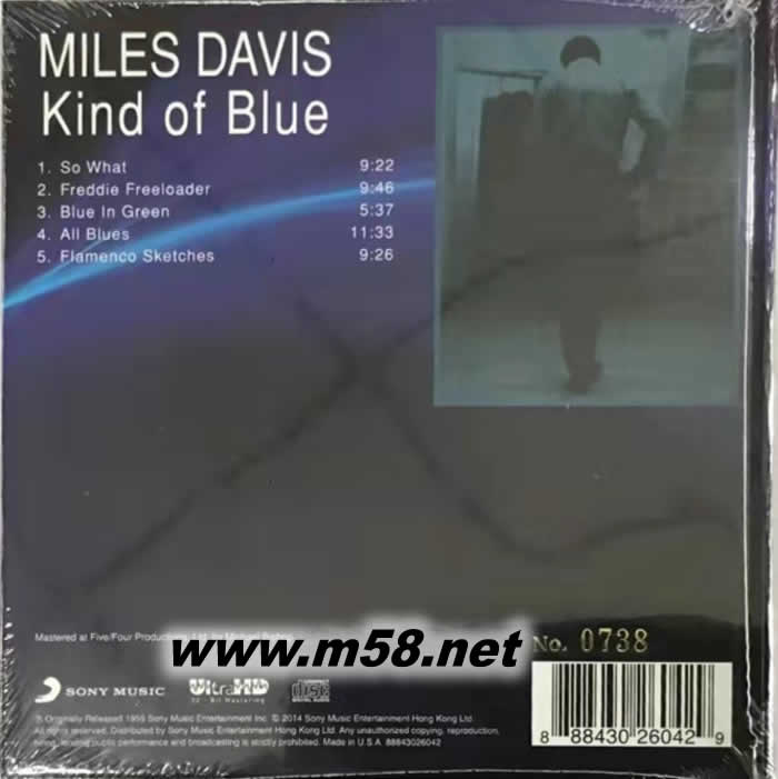 Kind of Blue ULTRAHD 限量版(m58.net) 東岸酷派時(shí)期調(diào)式爵士經(jīng)典代表。 史上最偉大小喇叭巨擎Miles Davis的入門推薦,爵士樂迷收藏必備。 素有「黑暗王子」之稱的小喇叭巨擘Miles Davis(1926-91),是一位奠定50年代酷派(Cool School)冷調(diào)風(fēng)格,開創(chuàng)60年代末期Jazz-Rock融合(Fusion)新樂風(fēng)的先鋒;受到咆勃(Bop)時(shí)期最具代表性薩克斯風(fēng)大師Charlie Parker提攜,Miles Davis由紐約52街的酒吧表,跨入大樂團(tuán)爾后自組五重奏的歷程,不僅綻放個(gè)人深刻色彩,更跨越膚色藩蘺成就后起之秀。這張專輯除了獲得企鵝爵士五星最高評(píng)價(jià),也是各家樂評(píng)一當(dāng)?shù)劁N倍超越70萬張,全球銷售高達(dá)兩百萬張。「Kind Of Blue」譜寫酷派爵士時(shí)期,調(diào)式爵士(modal)經(jīng)典代,Miles Davis 與作曲及鋼琴家Bill Evans共同蘊(yùn)育出主要行進(jìn),以貫穿整張專輯的概念為主軸,藉著其他樂手的加入而染蔓延團(tuán)化層次分明的無際空間。參與本專輯的樂手們?cè)谌蘸蠼猿蔀榫羰繕方缫牵窴ind of Blue」也是Miles Davis五重奏顛峰時(shí)期的專輯,每一位樂手表現(xiàn)超高水準(zhǔn)。中薩克斯風(fēng)手John Coltrane與Miles共有的靈巧思緒以純熟的默契化作柔暢的旋律,在最具代表性曲目 "So What"里頭可以發(fā)現(xiàn)兩人即興演奏的精彩絕倫。而高音薩克斯風(fēng)手"Cannonball"Adderley、貝斯名將Paul Chambers和鼓手James Cobb在Miles穿針引線的前導(dǎo)帶領(lǐng),凝聚演繹技巧絕妙境界的高張力。只有現(xiàn)在"Flamenco Sketches"一曲的鋼琴大師Wynton Kelly,同樣跟樂手們演出完美契合的對(duì)話,專輯還有未曾在樂手最完美的一次經(jīng)典錄音,透過重新數(shù)位製作呈獻(xiàn)細(xì)膩感動(dòng)的質(zhì)素;也是認(rèn)識(shí)史上最偉大爵士巨人Miles Davis的入門推薦,與爵士樂迷收藏迷收藏的必備經(jīng)典! Sony與FIM (一聽鐘情) 合作, 首次推出3款Ultra HD 32-bit Pureflection CD. 全部母帶Re-mastering及壓碟過程均在美國(guó)處理, 每款CD附有詳盡Precision Replication Report 測(cè)試報(bào)告, 製作嚴(yán)謹(jǐn), 高質(zhì)原音表現(xiàn)! 全球限量1,000張, 特別印有獨(dú)立編號(hào)更顯珍貴!