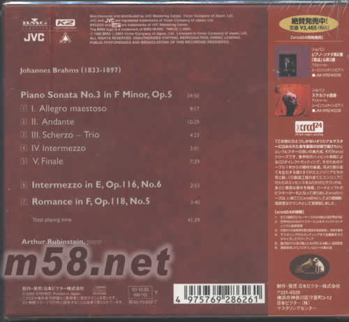 BRAHMS布拉姆斯 SONATA IN F MINOR日本版XRCD(m58.net) 請點看產(chǎn)品正、背面大圖 日本版XRCD古典發(fā)燒系列共有十數(shù)個產(chǎn)品 錄音:1959年