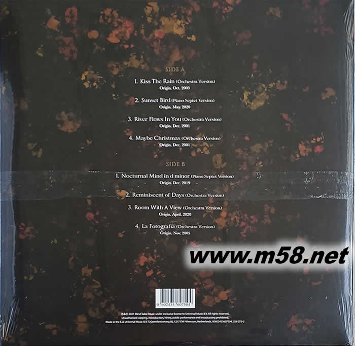 THE REWRITTEN MEMORIES 20周年 黑膠(m58.net) 李閏珉的音樂作品里,展現了兼融東方的抒情與西方的典雅細致的音樂風格。他精致的演奏技巧,予人一種非凡藝術家的深刻印象。本專輯是為紀念他首張專輯發行20周年發行。新專輯收錄了他一系列最受歡迎的作品,包括:《RIVER FLOWS IN YOU》及《KISS THE RAIN》等,并采用全新的交響樂版,由鋼琴家本人進行編曲。180克黑膠。
