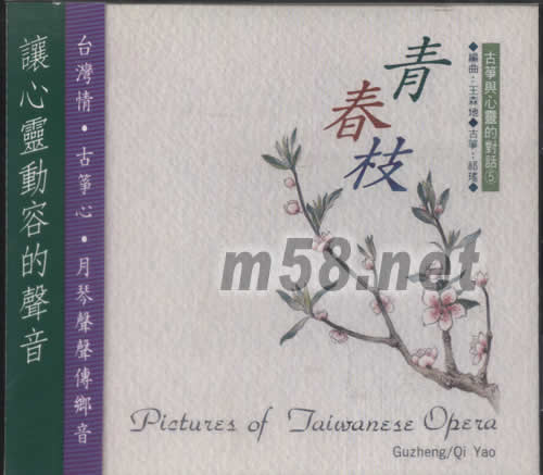 青春枝(古箏與心靈的對話5)(m58.net) 臺灣情 古箏心 月琴聲聲傳鄉音 在傳統的臺灣音樂格局中打造另一度欣賞空間,是這張專輯所背負的重要使命,否則不會那么用心地去採譜\編曲,又找來獲獎不繼的古箏新秀\極有個性的月琴手和合成器好手,完成這張少見的臺灣歌仔戲音樂改編作品. 專輯中的曲目都是人們耳熟能詳的歌仔調,即使經過改編,也都保留了原有的風味,所以聽來是那么親切可人.難得的是,古箏的演奏是如此貼切自然,一如預期地將歌仔調音樂的神韻做了最好的詮釋和創新,讓聽音樂的耳朵有著如沐春風般的舒活.這張佳作,實在不可不聽.