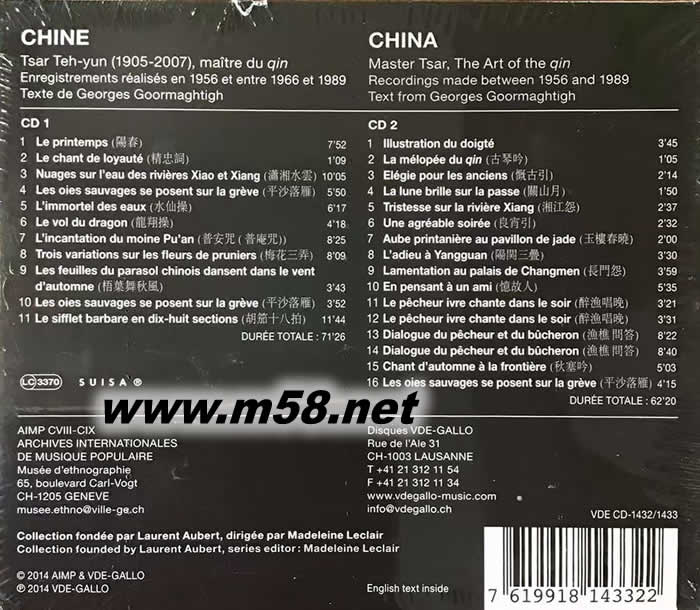 蔡德允(1905~2007) 的古琴藝術China: The Art of the Qin專輯背面圖片