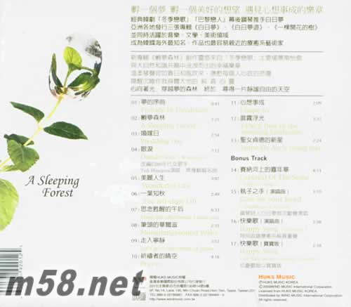 01. 夢的序曲 02. 孵夢森林 03. 婚嫁日 04. 眼淚 05. 美麗人生 06. 一葉知秋 07. 思念蘇醒的午后 08. 筆頭的華爾茲 09. 走入寧靜 10. 祈禱者的晴空 11. 心想事成 12. 晨霧浮光 13. 圣女貞德的新星 Bonus Track 14. 塞納河上的嘉年華 15. 執子之手/演唱曲 16. 快樂歌/演唱曲 17. 快樂歌/寶寶版