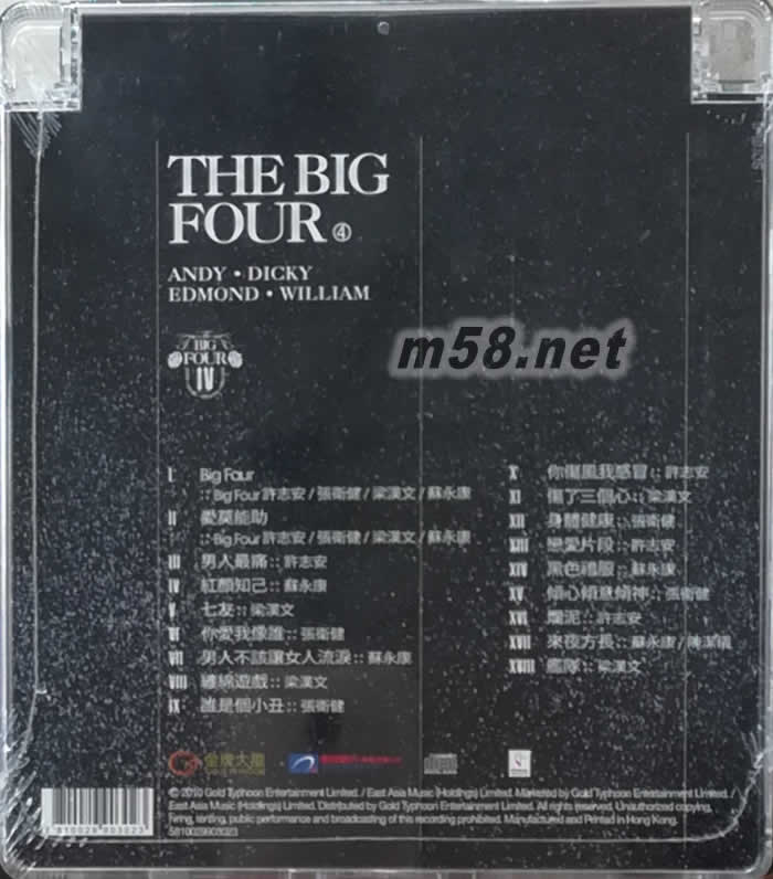許志安、梁漢文、張衛(wèi)健與蘇永康老友鬼鬼,2010年終于為友情排除萬難,組成 Big Four 并將于3月12至15日在紅館舉行首次《Big Four 世界巡迴演唱會(huì)》,并合唱由雷頌德和黃偉文創(chuàng)作的「Big Four」,一圓多年以來同臺(tái)開騷演出的心愿。另一首新歌「愛莫能助」也是呼應(yīng)兄弟手足之間情互相支持。 《The Big Hits Big Four》碟內(nèi)收錄了Big Four合唱的兩首「Big Four」和「愛莫能助」,以及16首四子各自的經(jīng)典代表作。唱片形象設(shè)計(jì)則由蘇永康負(fù)責(zé)。