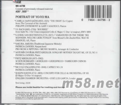 PORTRAIT OF YO-YO MA專輯背面圖片
