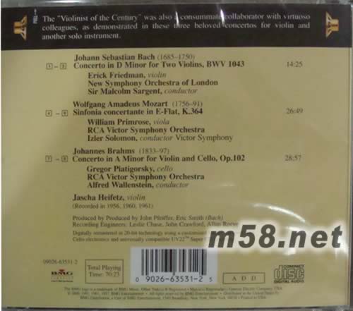 Bach Concerto For Two Violins Heifetz (海飛茲) 和Erick Friedman (弗里德曼) (CD) 2018/4/1