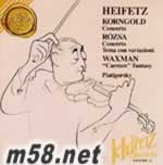 「小提琴協奏曲」是經胡伯曼、海飛茲兩人先后孕育而出,康果爾德將它題獻給馬勒之遺孀愛瑪。此曲之素材來自他之前的配樂作品,洋溢著后浪漫時期風格。羅沙生於匈牙利,也是隨著導演來到好萊塢發展,他的曲風受巴托克、高大宜影響很大。他的「小提琴協奏曲」、「交響協奏曲」都是由海飛茲催生而成,曲中罕用之前的配樂材料。瓦克斯曼的「卡門幻想曲」取材自薩拉沙泰的同名曲,帶有強烈吉普賽色彩。此曲本是用作電影配樂,后經海飛茲修訂成為今日之貌。