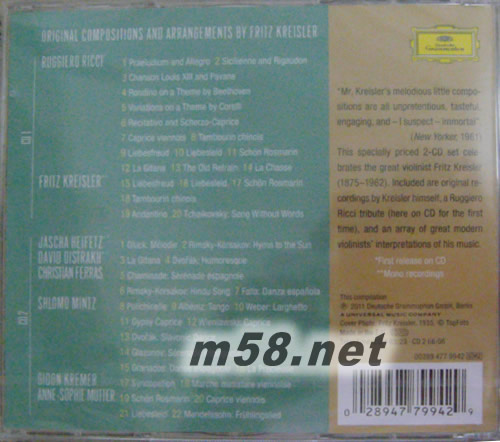 向克萊斯勒致敬Homage To Fritz Kreisler(古典愛好者必備)專輯背面圖片