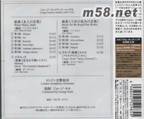 亨德爾 水上音樂 皇家焰火 賽爾指揮 HANDEL: WATER MUSIC|ROYAL(SHM-CD 日本版)(m58.net)