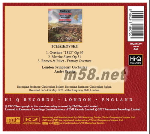 Andre Previn - Tchaikovsky:1812 Overture柴可夫斯基:1812序曲-羅密歐與茱麗葉 XRCD專輯背面圖片