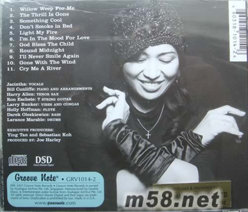 JACINTHA IS HER NAME DSD(m58.net) 潔辛塔向茱莉倫敦致敬的專輯:Cry Me a River,讓您體驗另一種感動。 Julie London,60-70年代的知名女歌手。兩年前逝世之后,仍以她知名的「Cry me a river」擁有廣大的歌迷與支持,而她同時也是Jacintha最喜愛的歌手之一。因此她以此專輯來向Julie London致敬與追思。 潔辛塔的歌聲有種讓人一聽難忘的魔力,那種如同化作千絲萬縷將你纏繞的嗓音,真可說是百聽不厭。再加上名製作人Joe Harley與錄音工程師Mike Ross兩人的攜手合作,打造出了這張細(xì)緻、極具臨場感的專輯