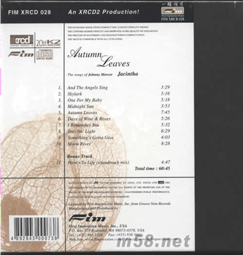 秋葉AUTUMN LEAVES XRCD專輯背面圖片