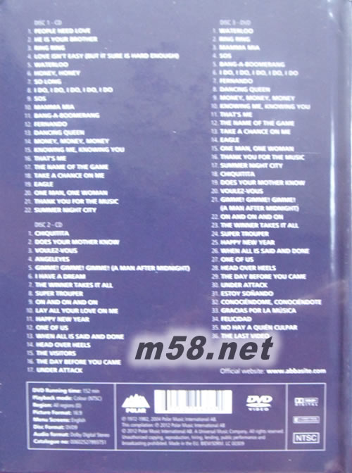慶祝ABBA成軍40週年紀(jì)念,環(huán)球音樂(lè)特別推出ABBA精選大碟【The Essential Collection】,2CD一次集結(jié)他們生涯39首不能錯(cuò)過(guò)的精彩大作,包括瑪?shù)つ裙谲娢枨癏ung Up”所取樣、凱莉米洛於雪梨奧運(yùn)中演唱的“Gimme! Gimme! Gimme! (A Man After Midnight)";發(fā)行屆滿(mǎn)30週年、全球樂(lè)迷最?lèi)?ài)的超級(jí)冠軍單曲“Dancing Queen”;西城男孩重新詮釋再造冠軍佳績(jī)的“I Have A Dream”,全球12國(guó)排行冠軍作“Fernando”,1974年勇奪歐洲歌唱大賽冠軍演唱曲“Waterloo”,以及“SOS”、“Chiquitita”、“Mamma Mia”…等百聽(tīng)不厭招牌作。精裝盤(pán)特別整理ABBA生涯最精彩的36首音樂(lè)錄影帶收錄在DVD部份,其中包含2首從未發(fā)行過(guò)的西班牙文版單曲MV(“Conociéndome, Conociéndote”及“Gracias por la música”)。傳唱40年的ABBA精華盡在【The Essential Collection】,跨時(shí)空收藏永恆的ABBA傳奇!