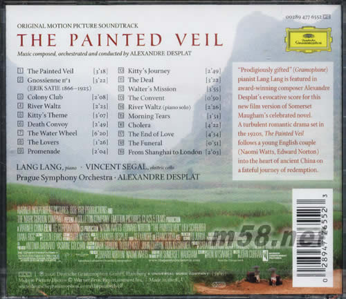 1. Painted Veil 2. No. 1: Lent 3. Colony Club 4. River Waltz 5. Kitty's Theme 6. Death Convoy 7. Water Wheel 8. Lovers 9. Promenade 10. Kitty's Journey 11. Deal 12. Walter's Mission 13. Convent 14. River Waltz 15. Morning Tears 16. Cholera 17. End of Love 18. Funeral 19. From Shangai to London