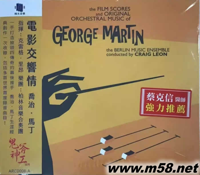 開頭的《胡椒樂園》就是他在1969年為披頭四電影《黃色潛水艇》所創作的一系列管弦樂組曲。接著是他為第8部詹姆士龐德電影《007:生死關頭》所譜寫的電影配樂,這部電影除了配樂扣人心弦之外,主題曲也是由披頭四成員保羅.麥卡尼演出,展現出另類的風格。《三篇美國即景》則是相當少見的寫景作品,而喬治.馬丁在此展現出他驚人的創作天賦,用音樂描繪出三種完全不同的美國風情。《牛奶木下》最早是BBC的廣播劇,后來被改編成舞臺劇與電影,故事講述威爾斯漁村一群居民的生活,曲風恬適淡雅。世界首度錄音的《教會合唱曲》更展現出喬治.馬丁對大編制與合唱曲的掌控能力,可說是集大成之作。《電影交響情》由克雷格.里昂指揮柏林音樂合奏團演出,聽完這張專輯,您就會知道為何披頭四的音樂風格如此多變,因為這位第五個團員不僅有著極為深厚的作曲功力,創意與想像力更是無人能及!此版本由德國老虎魚錄音室旗下全球最頂尖的母帶工作室Pauler Acoustics精心后製,再現最完美的錄音效果。