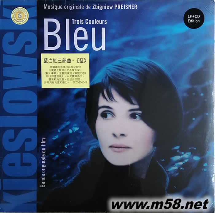 藍白紅三部曲 藍 BLEU TROIS COULEURS Original Soundtrack Zbigniew Preisner 黑膠(m58.net) 第50屆威尼斯電影節最佳影片金獅獎,基斯洛夫斯基最經典電影的配樂,反復聽上幾個月也不會失望,以交響樂為主,聽來較為沉重,但普非沉悶,非常具有力度和張力。180克黑膠加CD